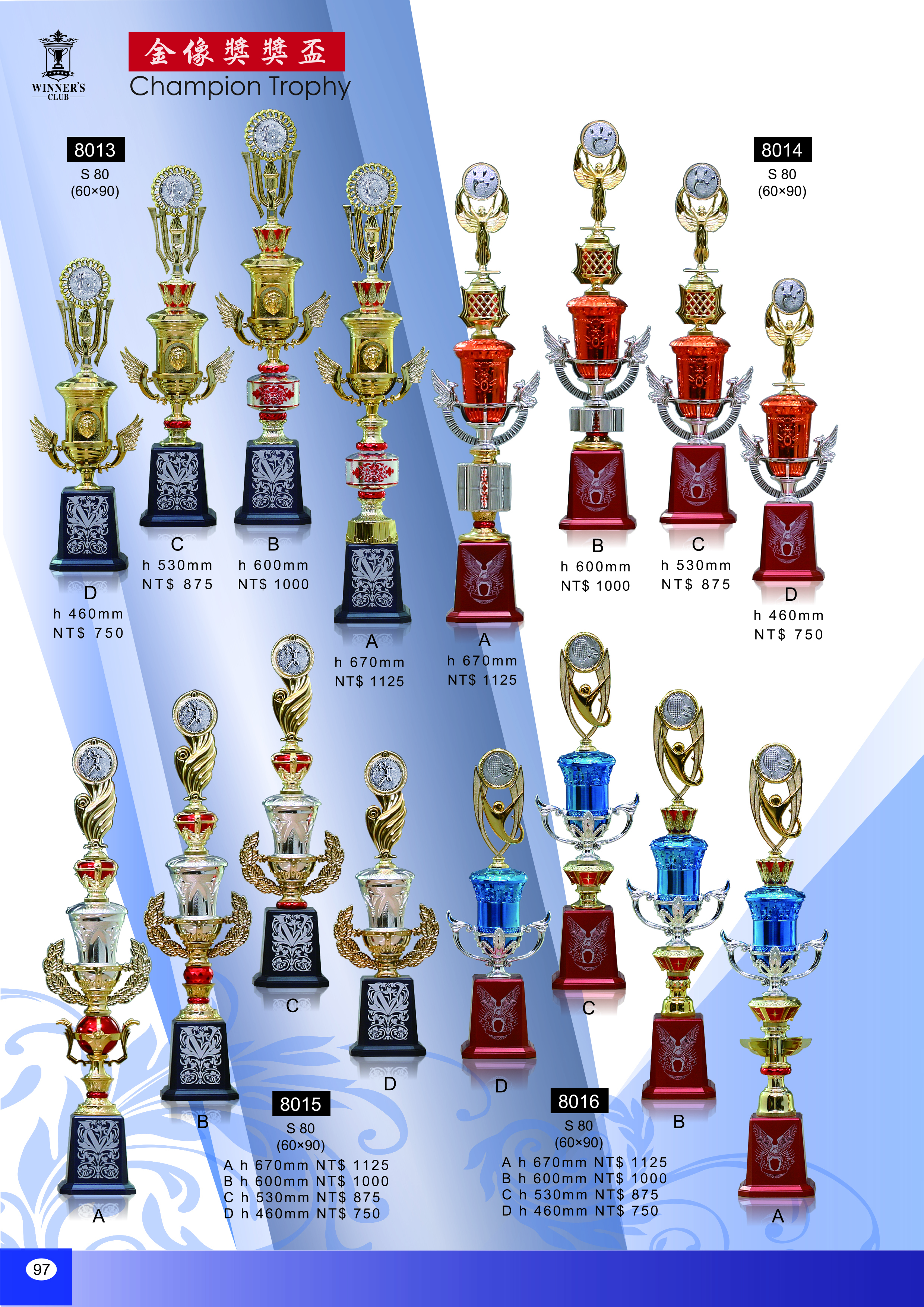 【WINNER'S CLUB】[8013] [8014] [8015] [8016] 單柱獎盃