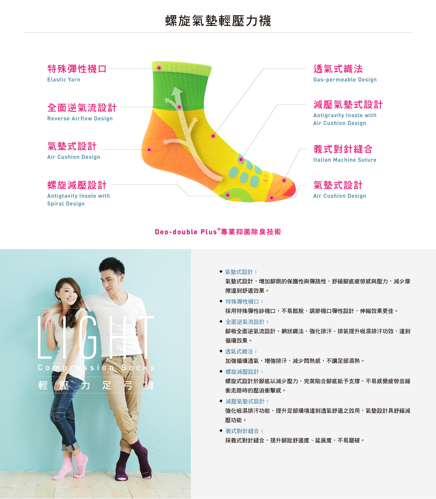 螺旋氣墊輕壓力襪 / 分析